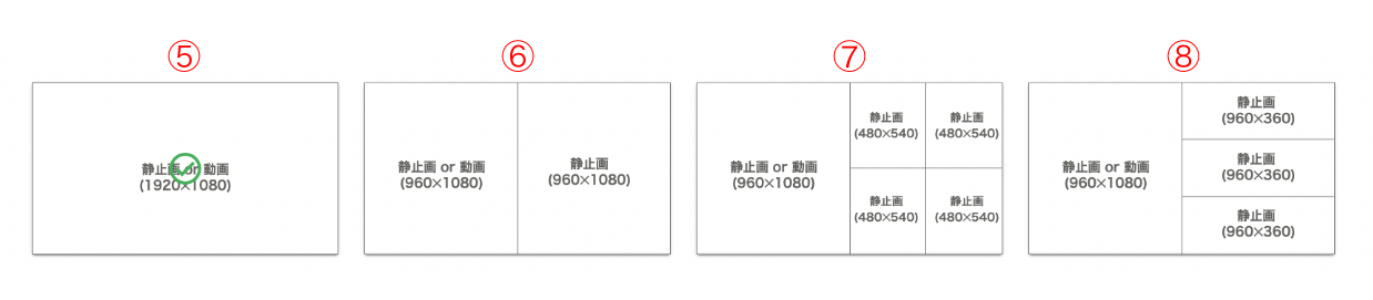 | ⑤ | 横型レイアウト(1920×1080) | 1 | 分割無し(全領域) |