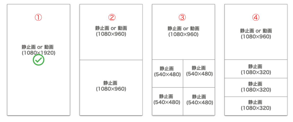 | ① | 縦型レイアウト(1080×1920) | 1 | 分割無し(全領域) |