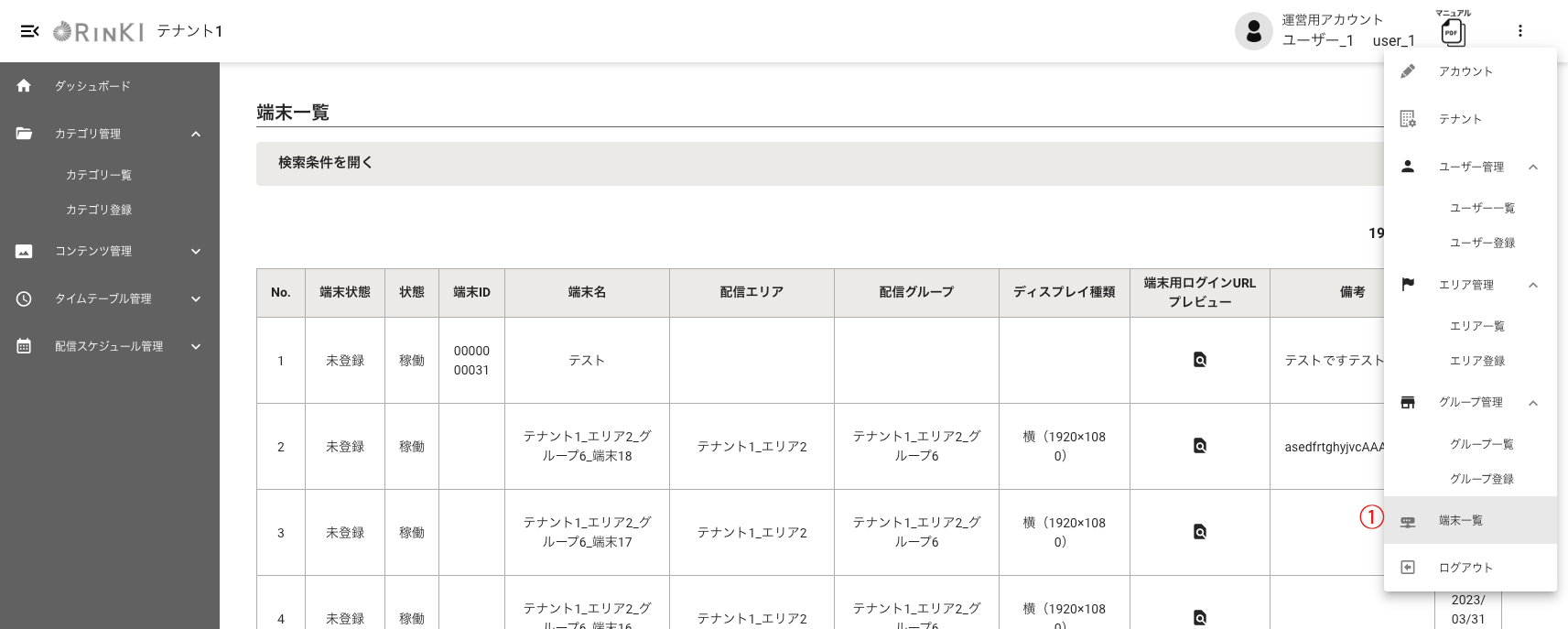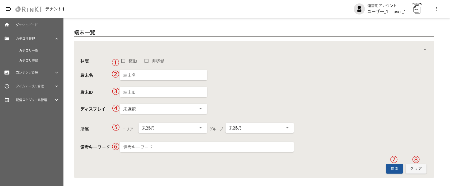 | 運営者用アカウント | すべての端末 | ・閲覧:全ての端末
