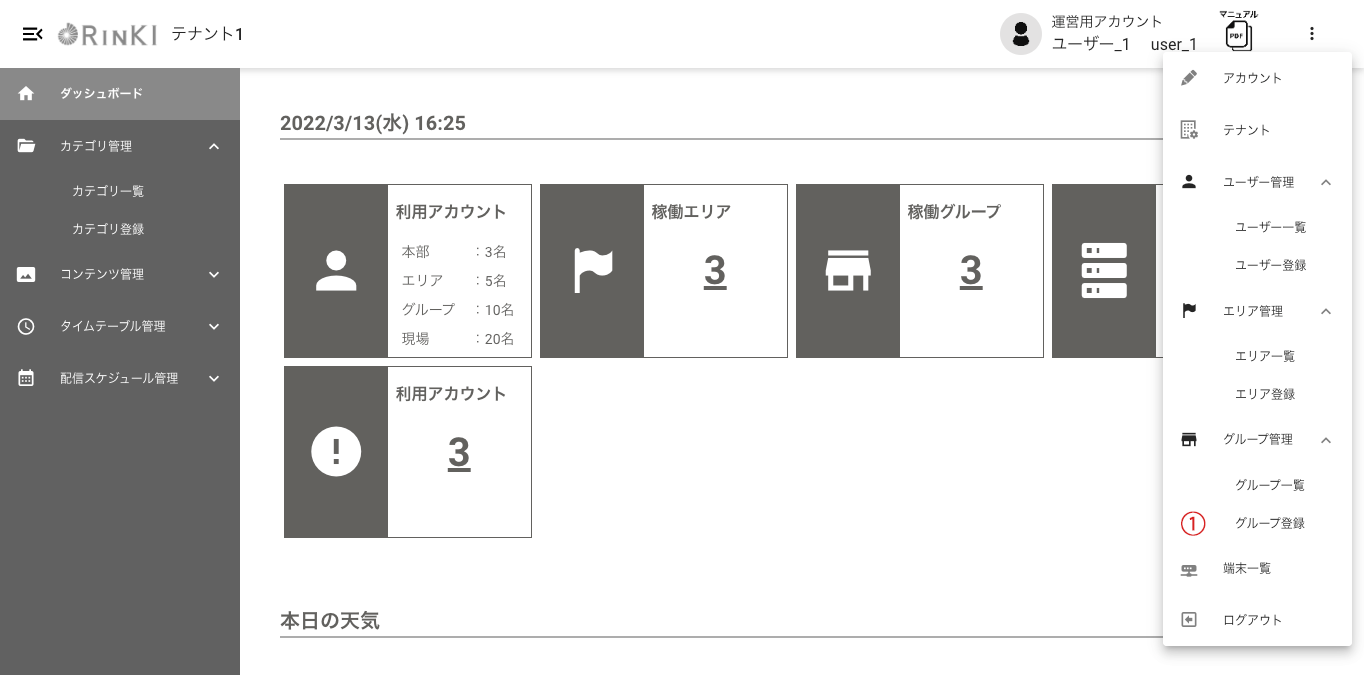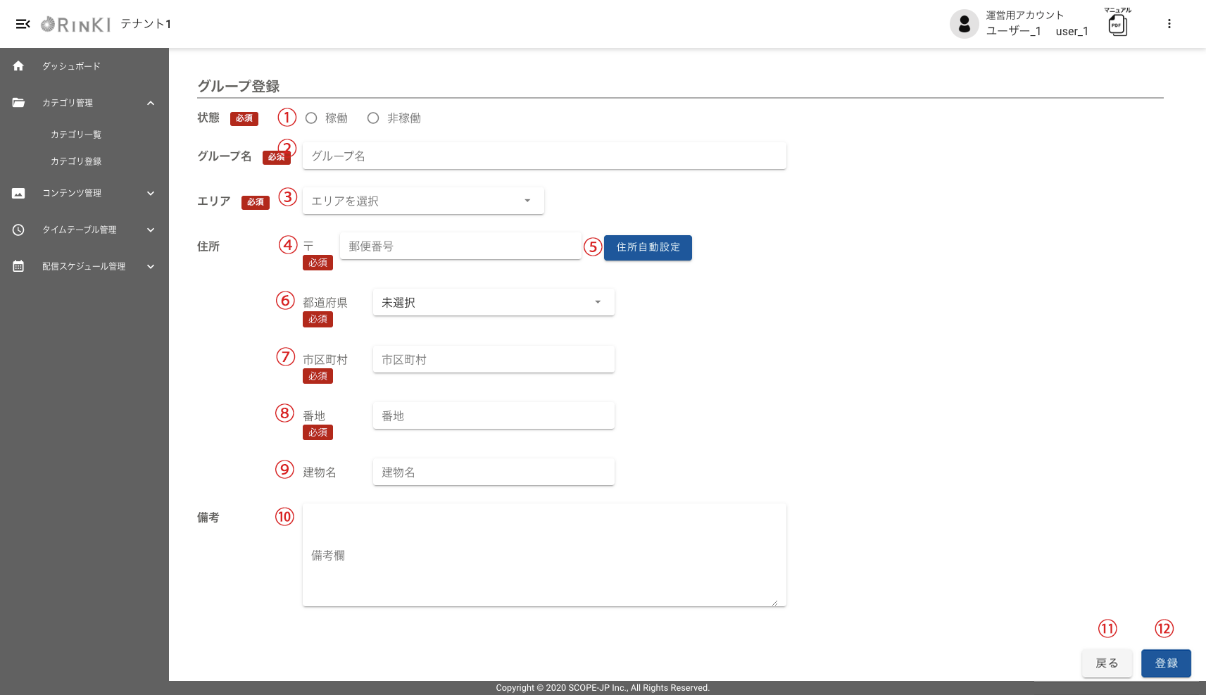ユーザーの持つ権限ごとに登録の仕様が異なります。