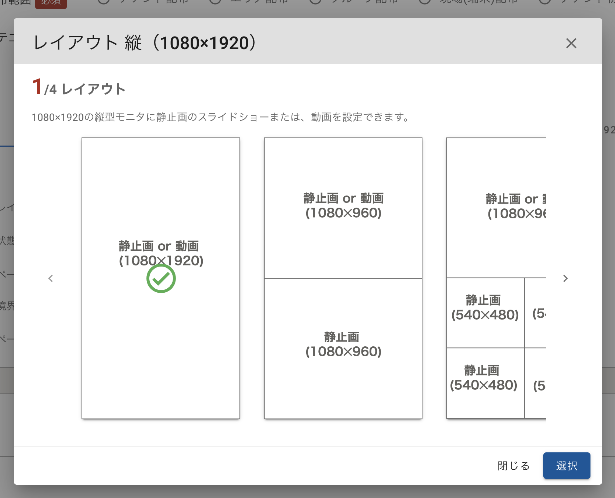 - ②:「未設定」を選択で「レイアウト選択画面」を表示します。