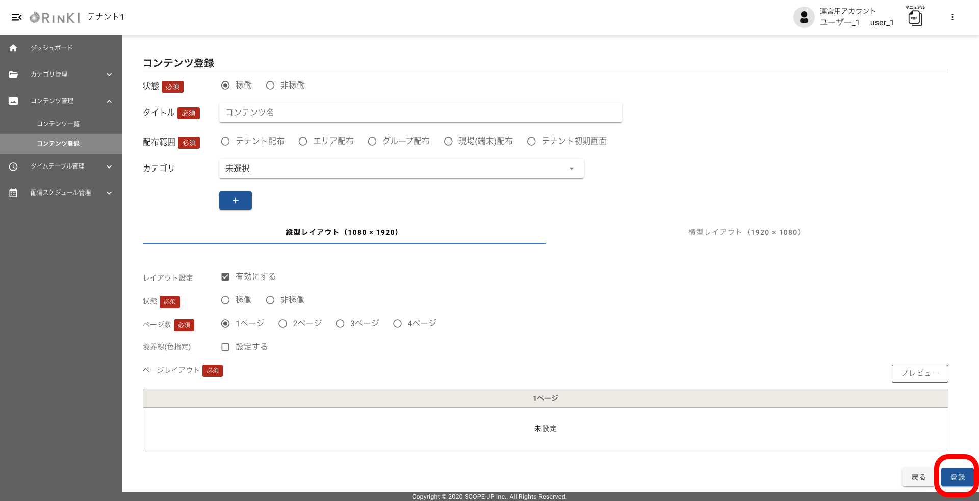 - 「登録」ボタンを押してコンテンツ登録を完了します。