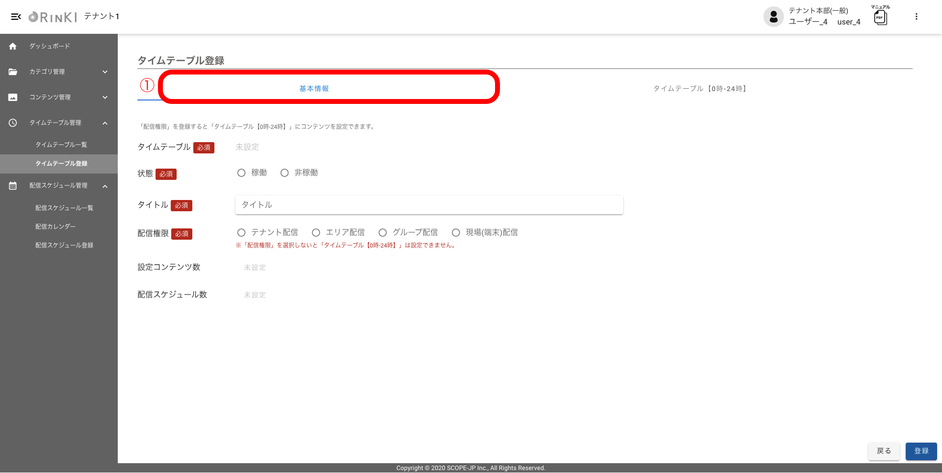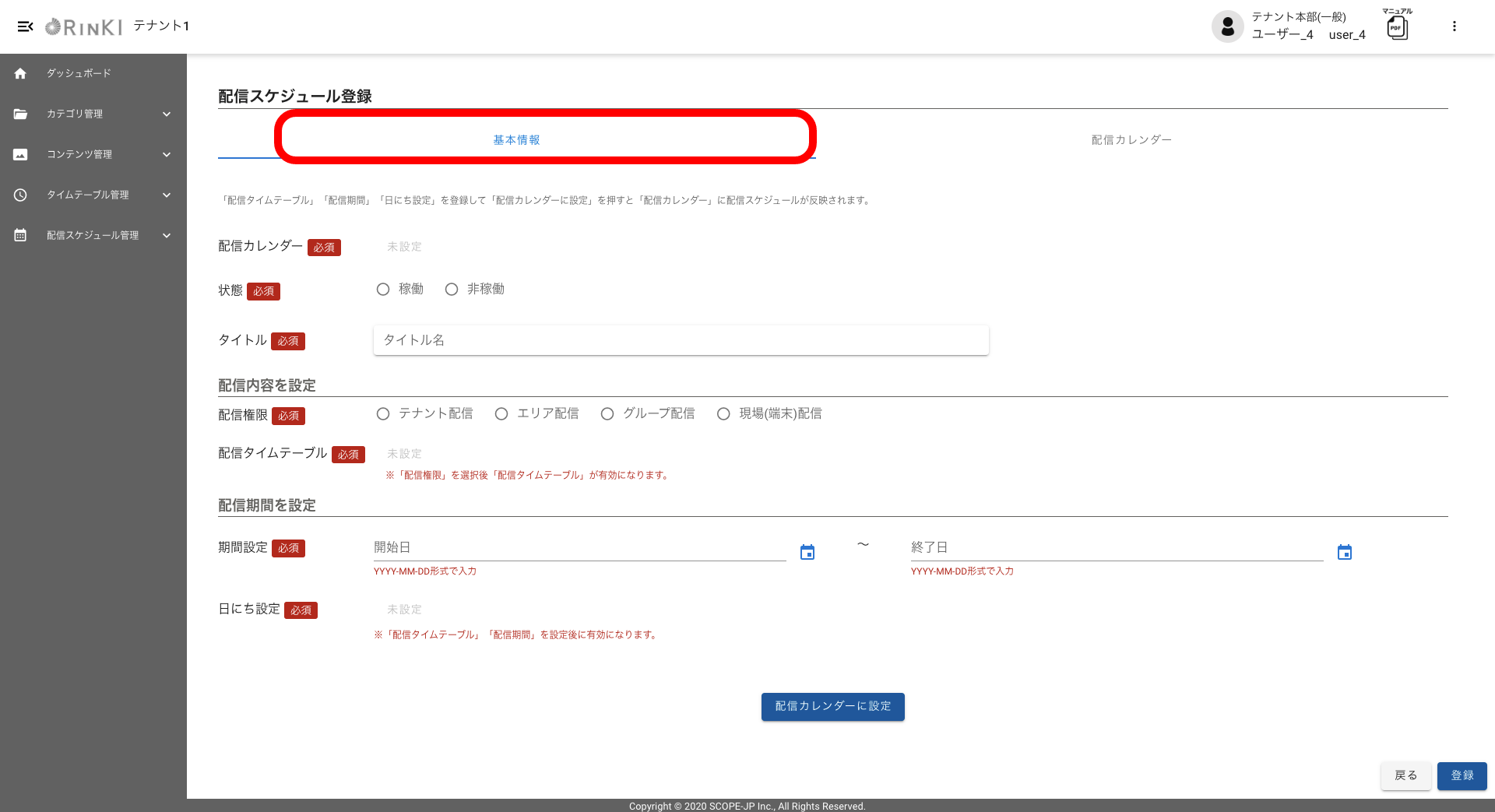 - 配信スケジュール登録にある「基本情報」のタブを開きます