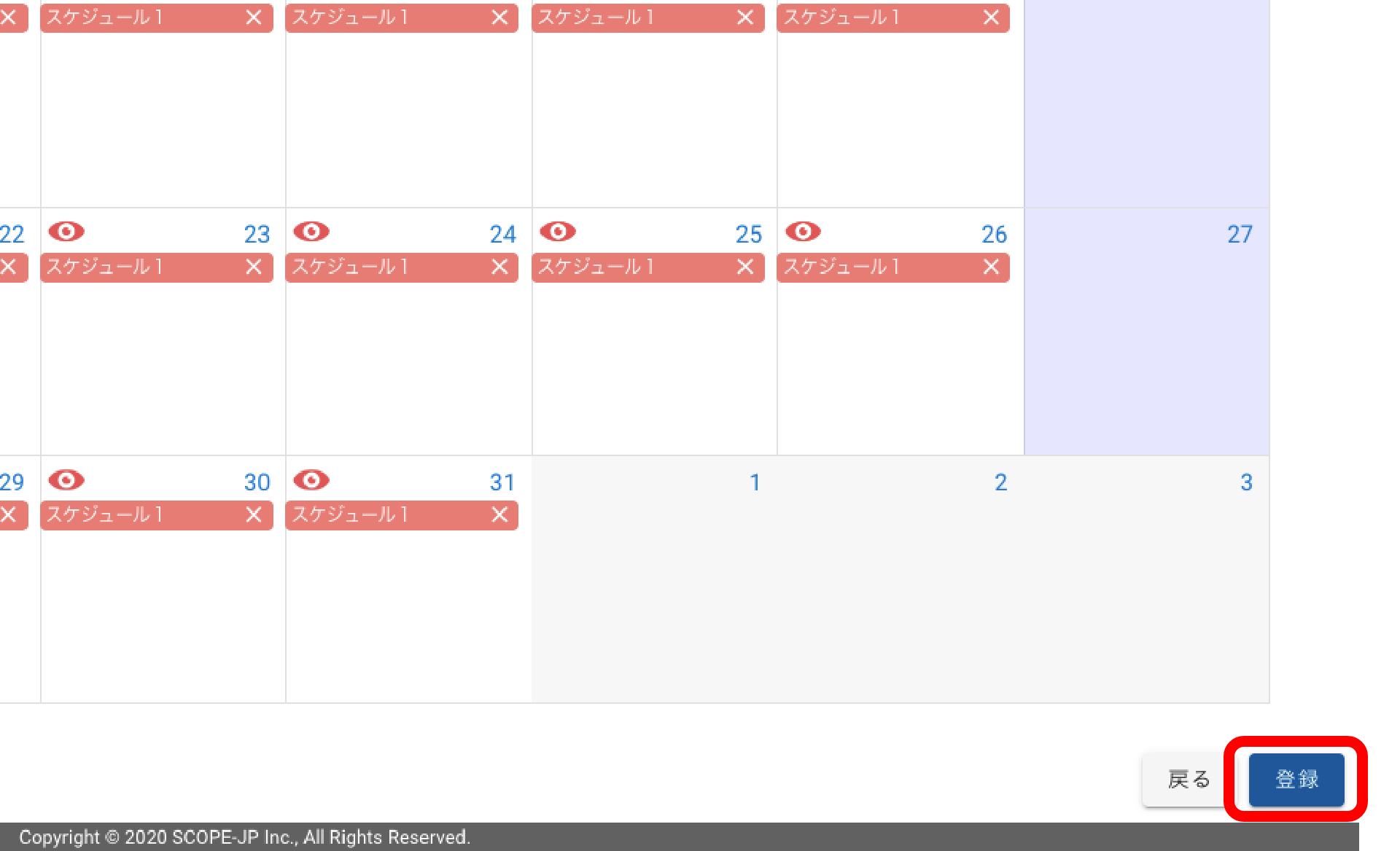 - 「登録」ボタンを押して配信スケジュール登録を完了します。