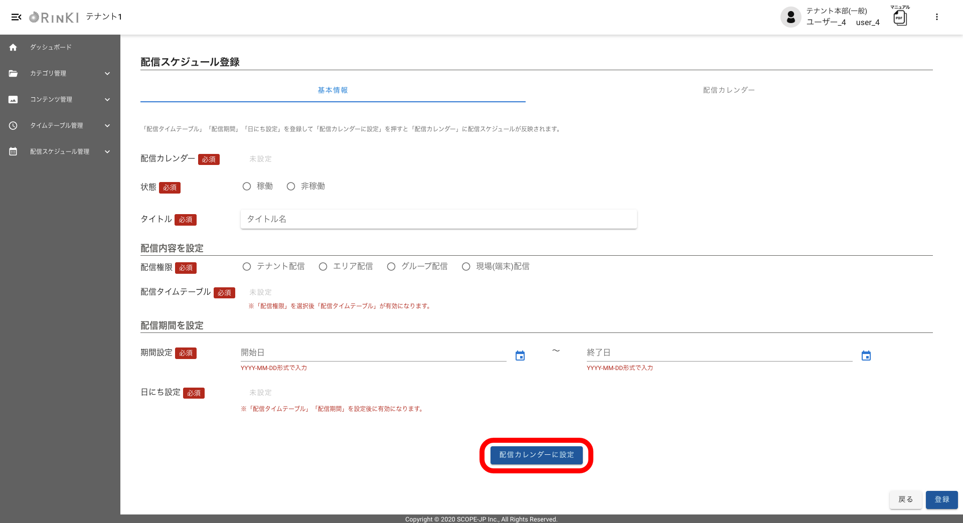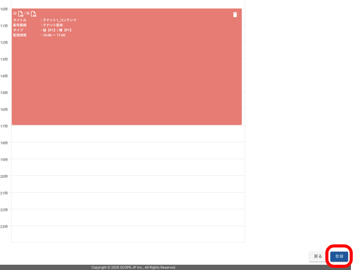 - こちらの画面で配信する時間帯とコンテンツを設定します。