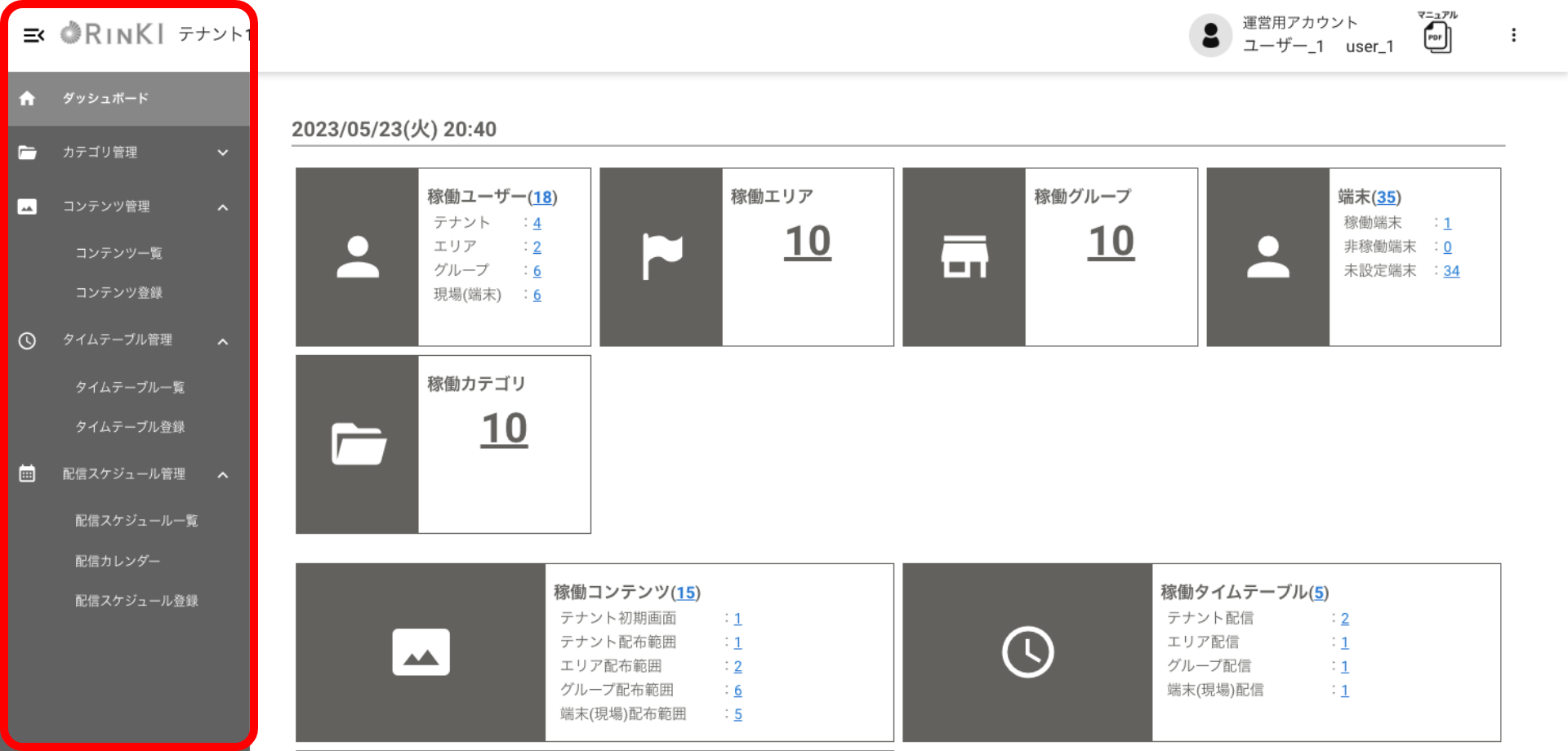動画、画像を配信させるには、コンテンツ、タイムテーブル、配信スケジュールを登録します。