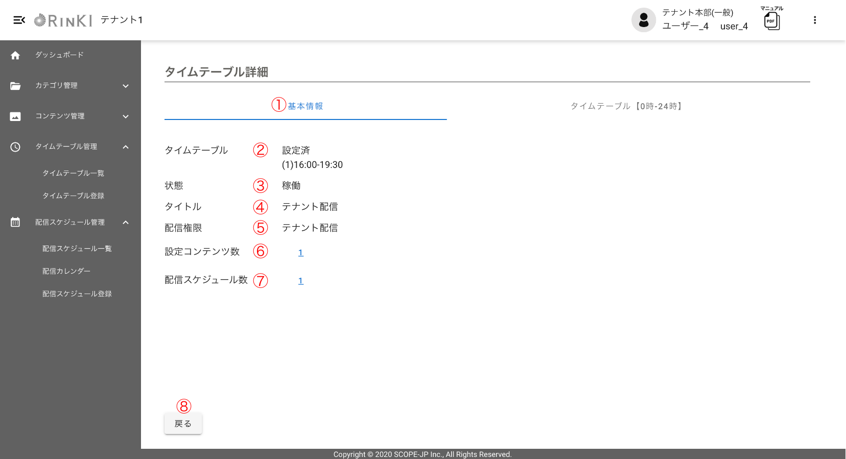 タイムテーブル一覧を表示している状態で、一覧の閲覧または、操作の閲覧から詳細画面を表示します。