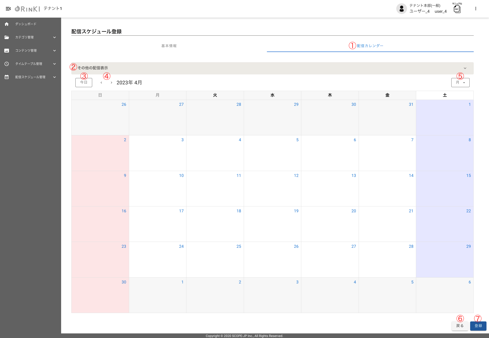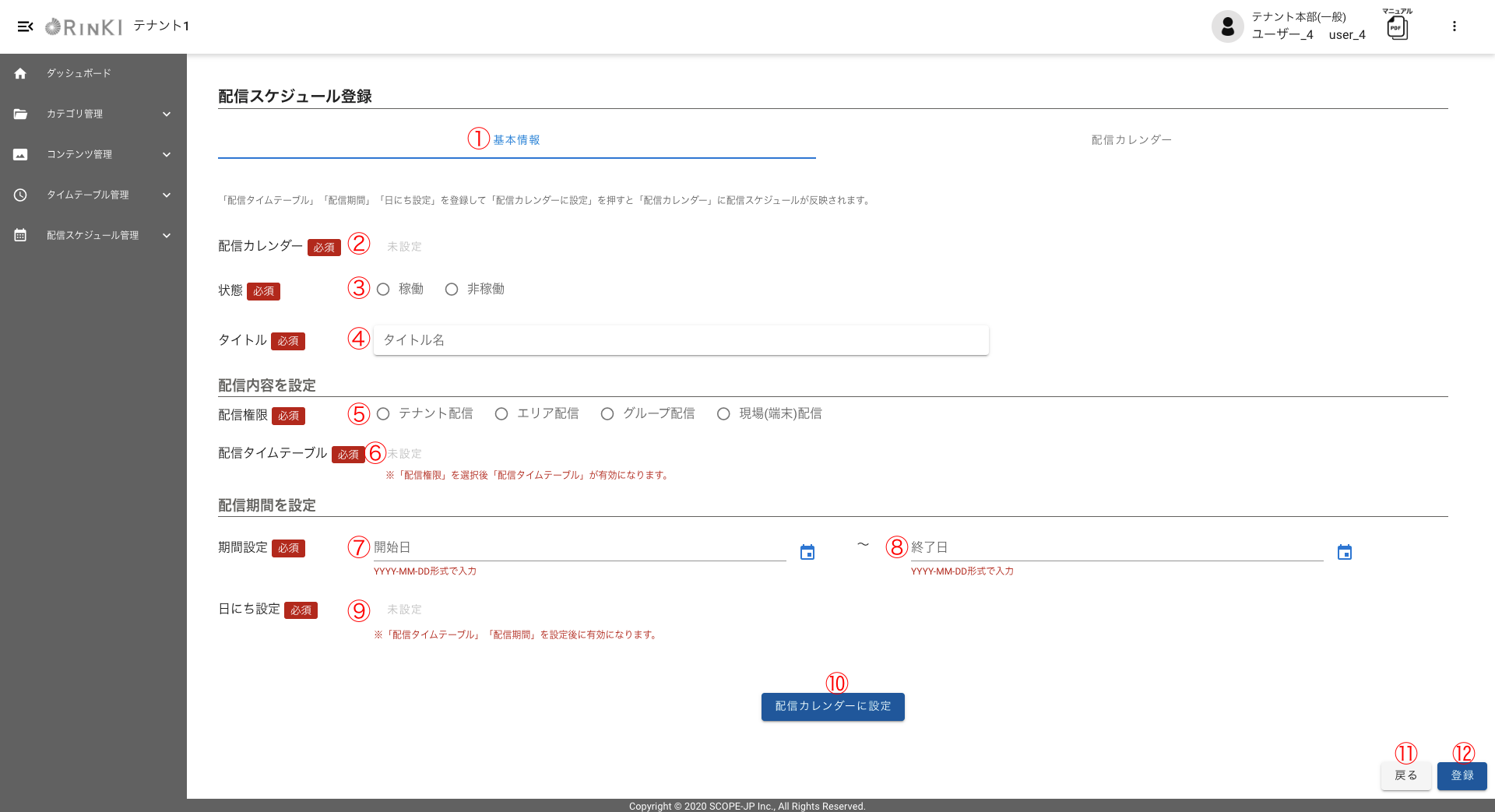 | ⑩ | 配信カレンダー設定 | ボタン | 設定したスケジュールを配信カレンダーに反映させる。 | |