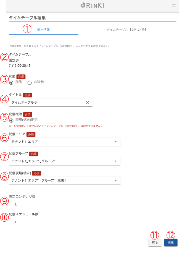 ユーザーの権限によって編集できるタイムテーブル「配信権限」が異なります。