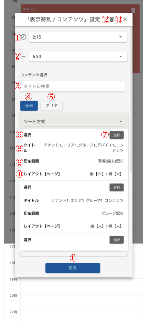 | ① | 開始時間 | セレクトボックス | ||