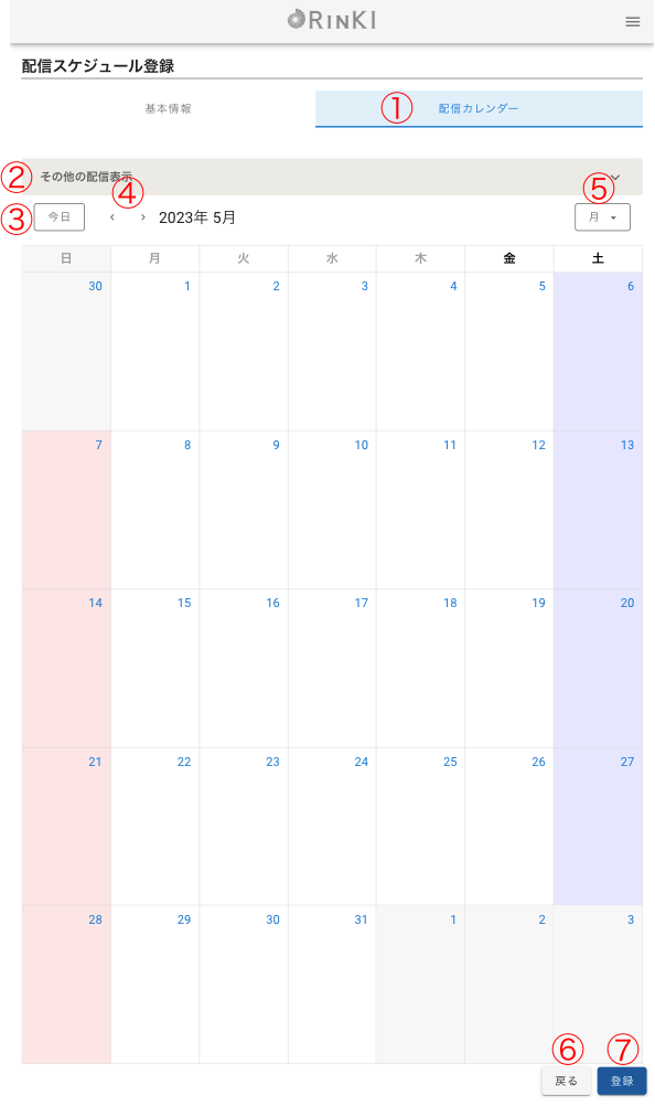 | ⑦ | 登録 | ボタン | 配信スケジュールを登録する |