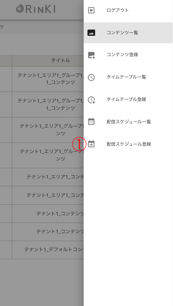 | ① | 配信スケジュール登録 | リンク | 配信スケジュール登録に遷移します |