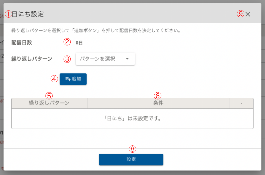 | ⑦ | 削除 | ボタン | 選択した繰り返しパターンを削除する。 | |